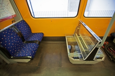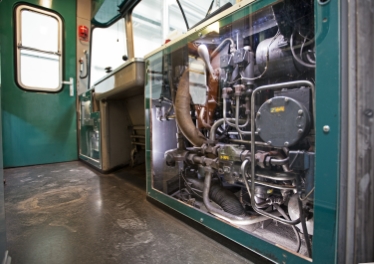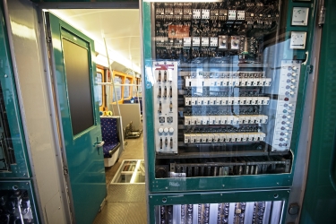 A kiállított szerelvényen megnézhetjük az ajtók működését ...